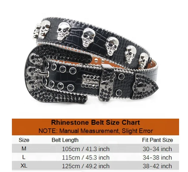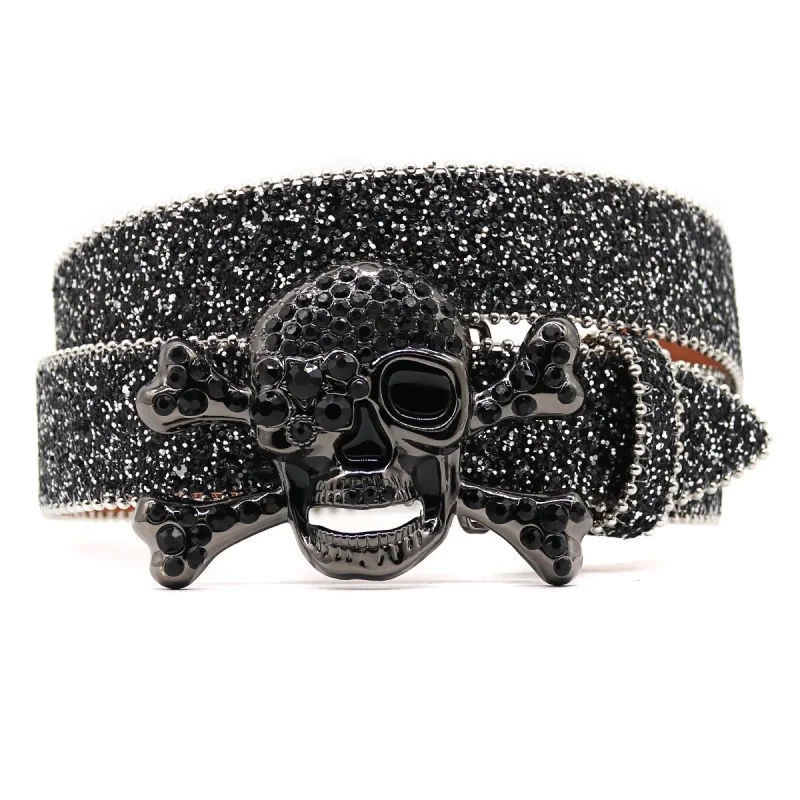 2023 Western Hot Fashion Women’s Black Flash Custom Rhinestone Belt With Full Diamond Skull Accessories Punk Men’s Jeans Belt