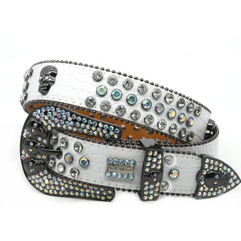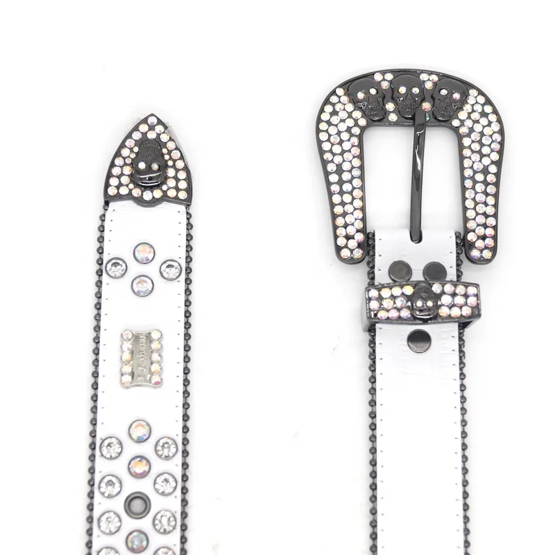 Customized Rhinestone Belt Embedded Skull Accessories Designer Men’s Belt Hip Hop Punk Fashion Men’s Belt
