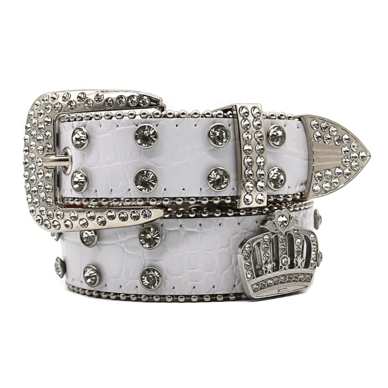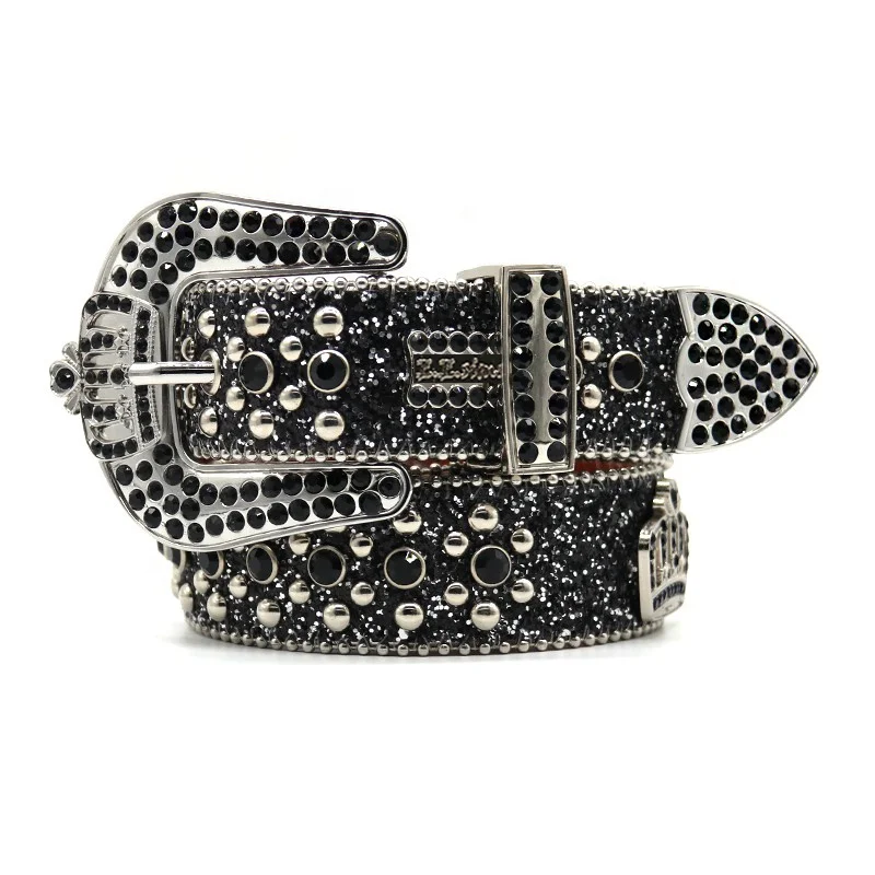 Customized Rhinestone Belt With Black Glitter and Crown Designer Belt for Men’s Fashion Trend and Men’s Belt