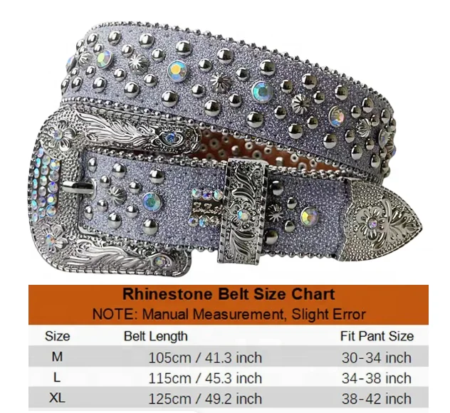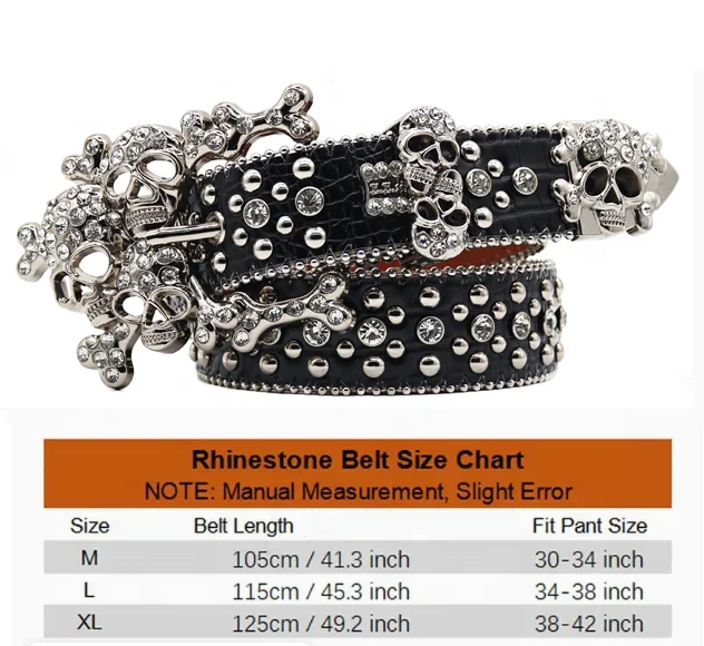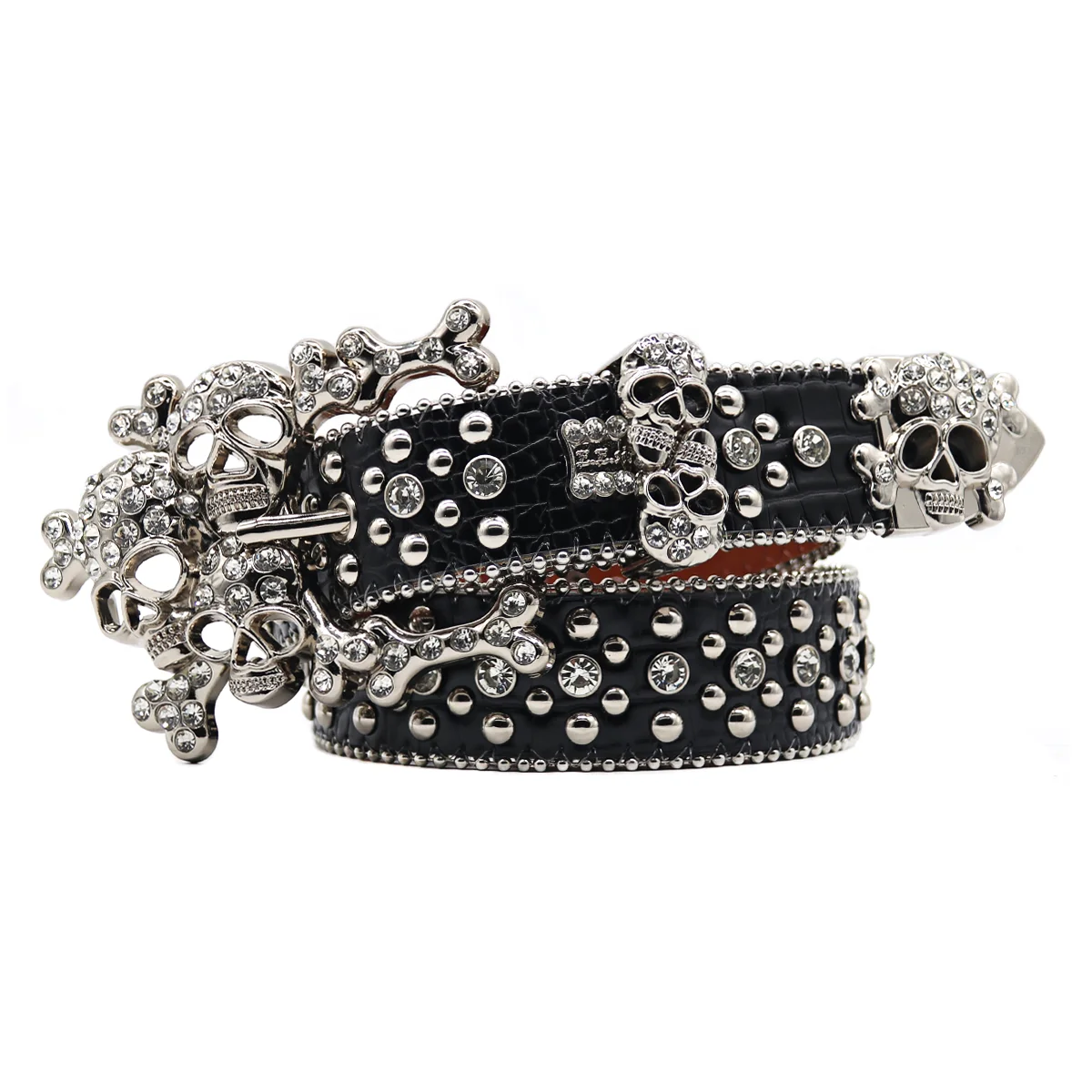 PU Belt Western Luxury Women’s Belt Button Head Fashion Trend Women’s Belt Crystal Rhinestone Head Silver Flash Alloy Skull