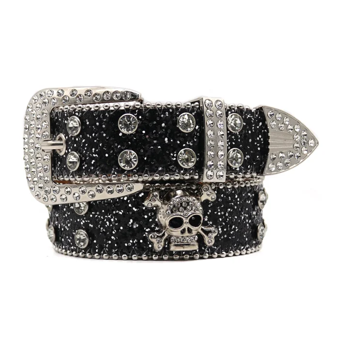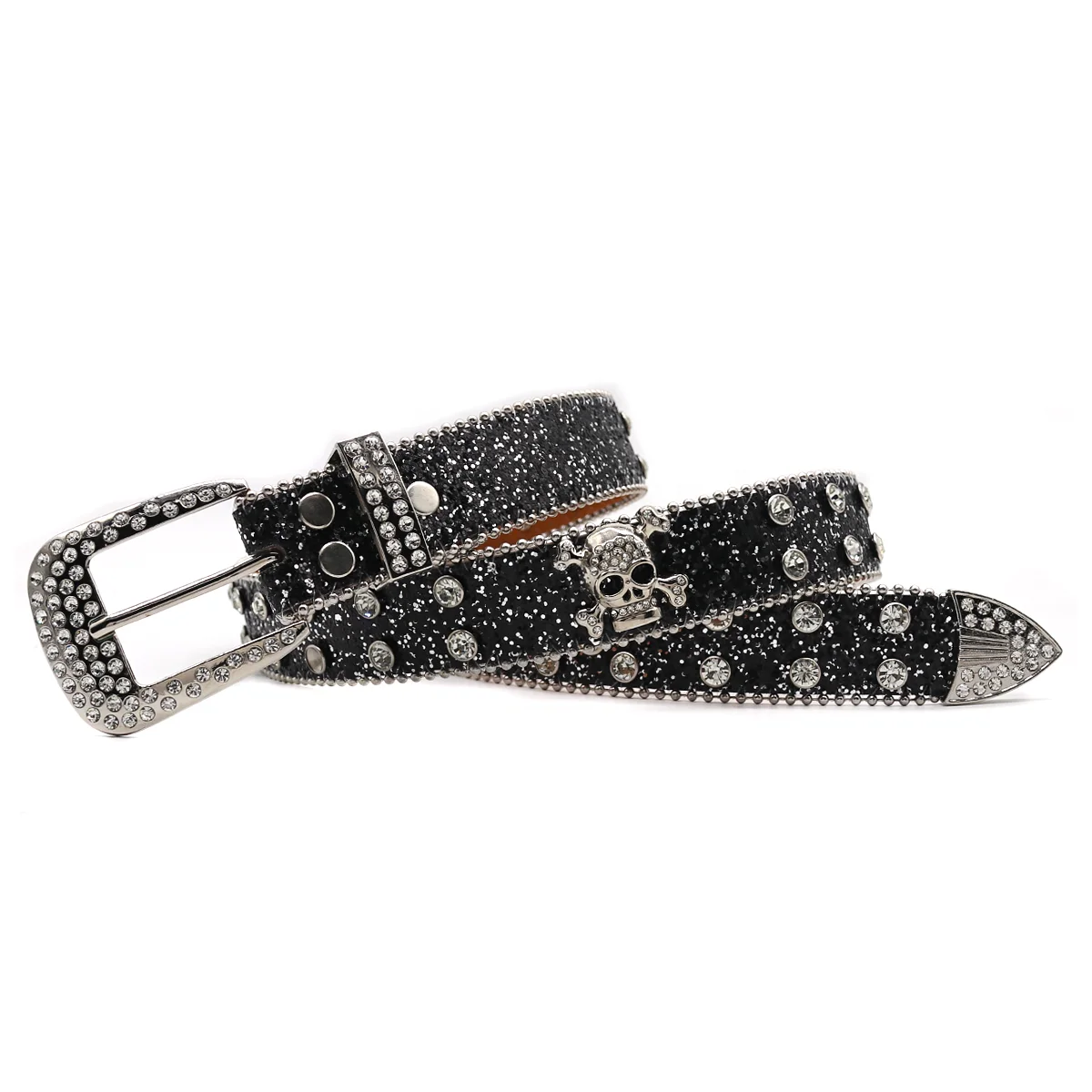 2023 Western Hot Fashion Women’s Black Flash Custom Rhinestone Belt With Full Diamond Skull Accessories Punk Men’s Jeans Belt