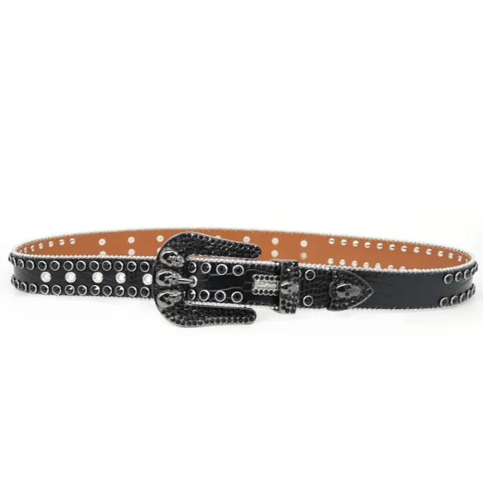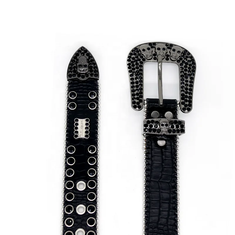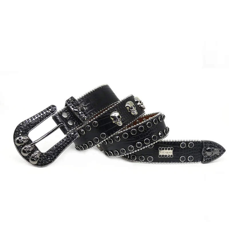 2023 Western Hot Fashion Women’s Black Flash Custom Rhinestone Belt With Full Diamond Skull Accessories Punk Men’s Jeans Belt
