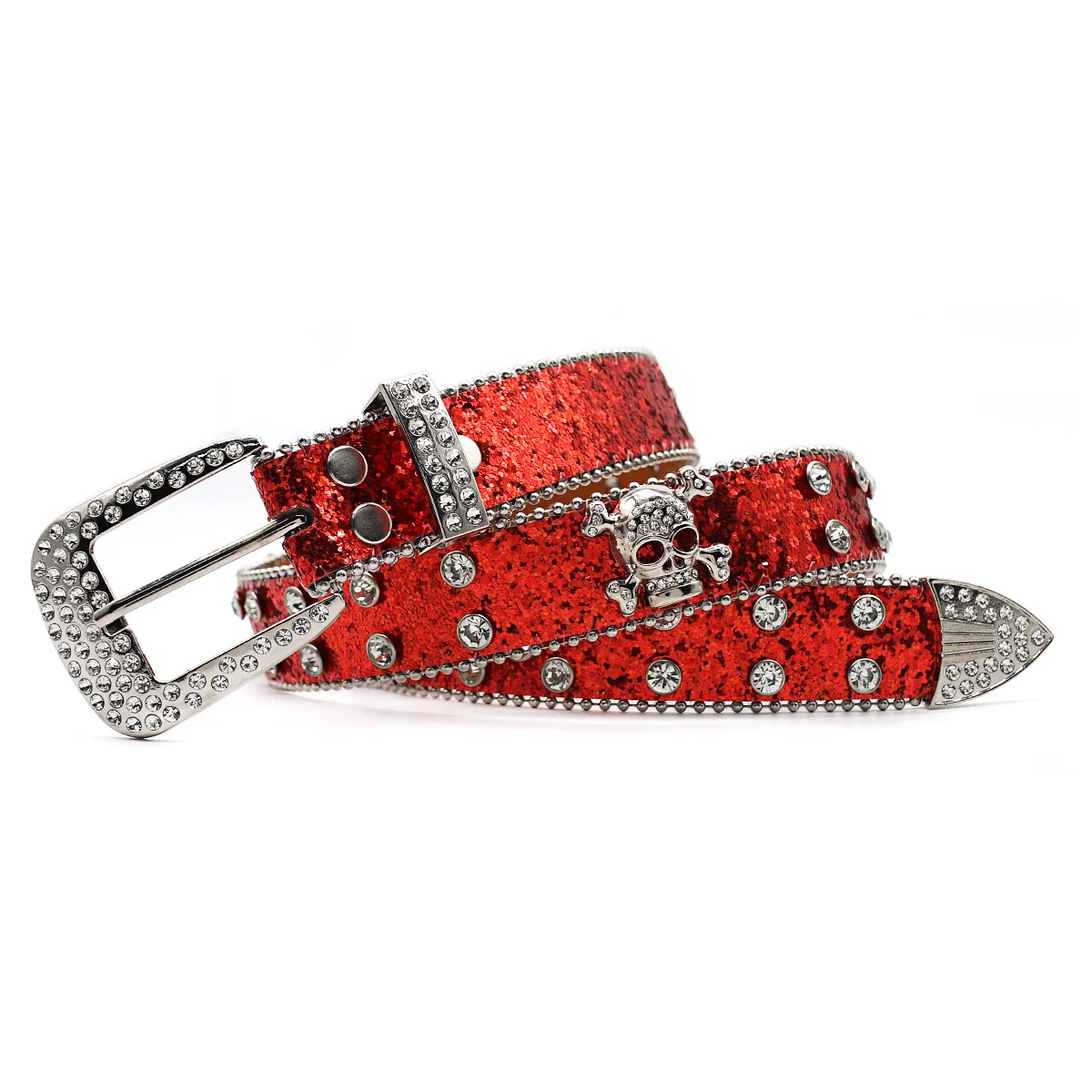2023 Western Hot Fashion Women’s Black Flash Custom Rhinestone Belt With Full Diamond Skull Accessories Punk Men’s Jeans Belt