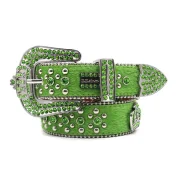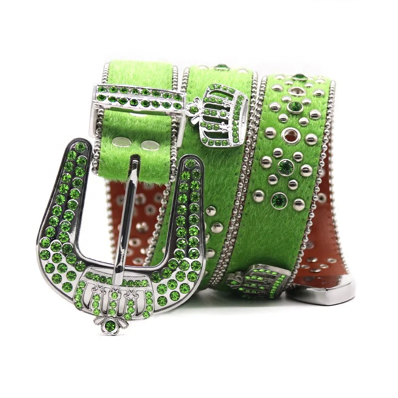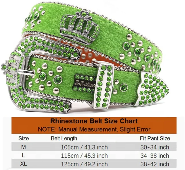Green Plush Belt With High-quality Inlaid Crown Rhinestone Belt Designer Belt for Men’s Fashionable and Personalized Accessories