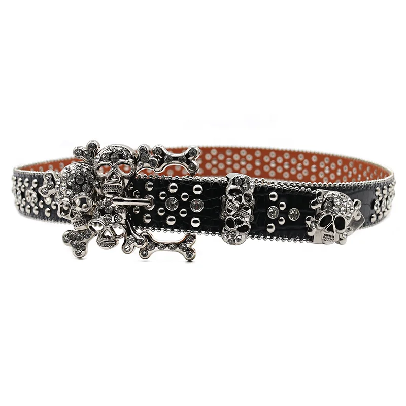 Customized Rhinestone Belt Embedded Skull Accessories Designer Men’s Belt Hip Hop Punk Fashion Men’s Belt