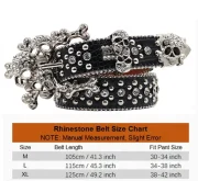 2023 Western Hot Fashion Women’s Black Flash Custom Rhinestone Belt With Full Diamond Skull Accessories Punk Men’s Jeans Belt