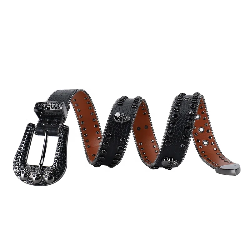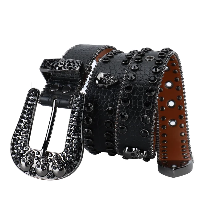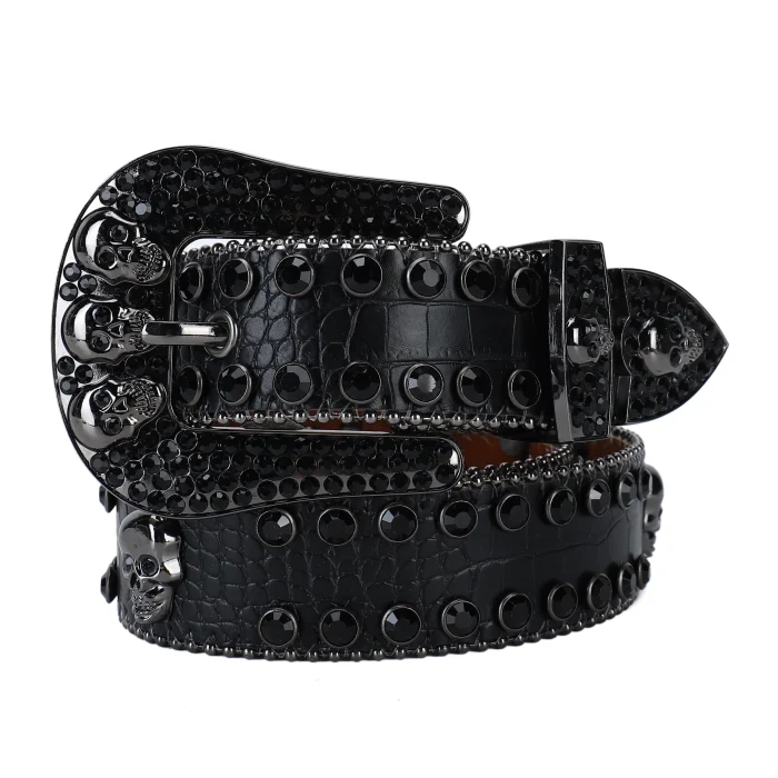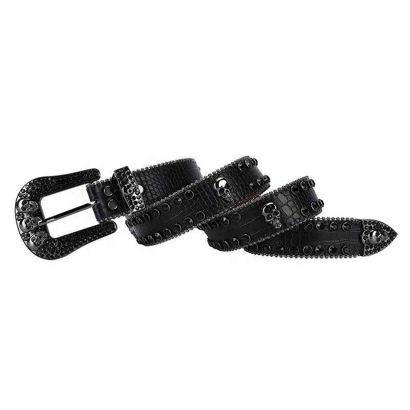 2023 Western Hot Fashion Women’s Black Flash Custom Rhinestone Belt With Full Diamond Skull Accessories Punk Men’s Jeans Belt