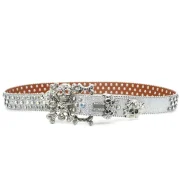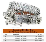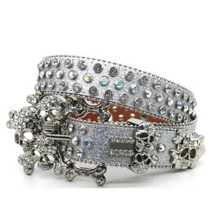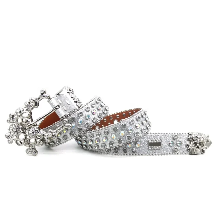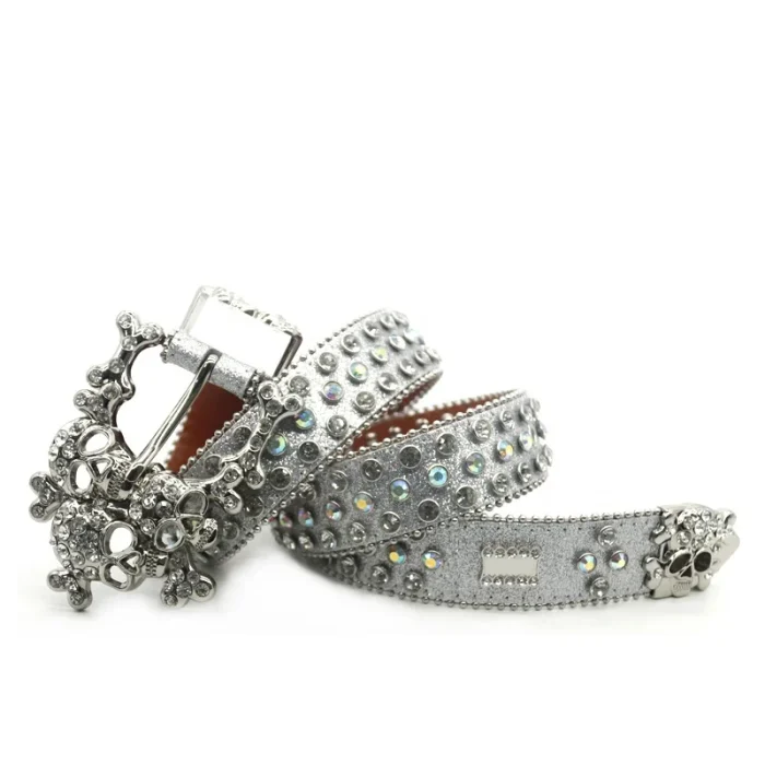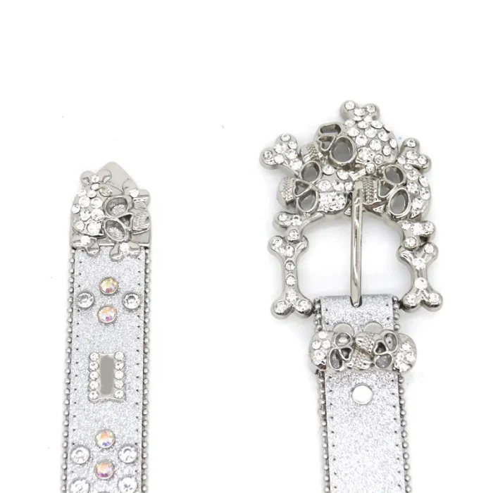 PU Belt Western Luxury Women’s Belt Button Head Fashion Trend Women’s Belt Crystal Rhinestone Head Silver Flash Alloy Skull